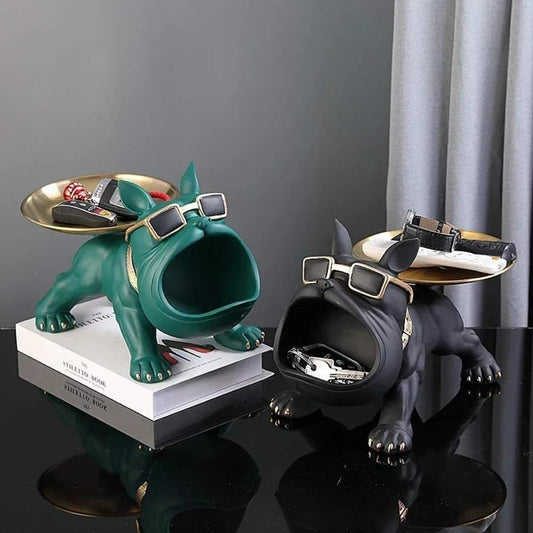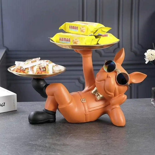Fauler Bulldoggen-Skulptur mit Doppel-Tablett