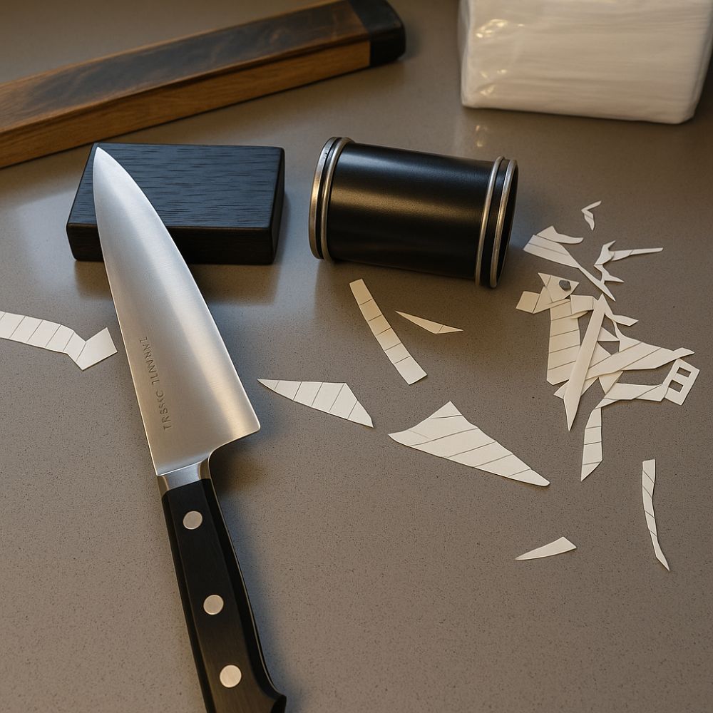 Im Allgemeinen werden westliche Messer in einem Winkel von 20° geschärft, während japanische Messer einen Winkel von 15° haben. Um den genauen Winkel für ein bestimmtes Messer herauszufinden, hilft meist eine schnelle Google-Suche.